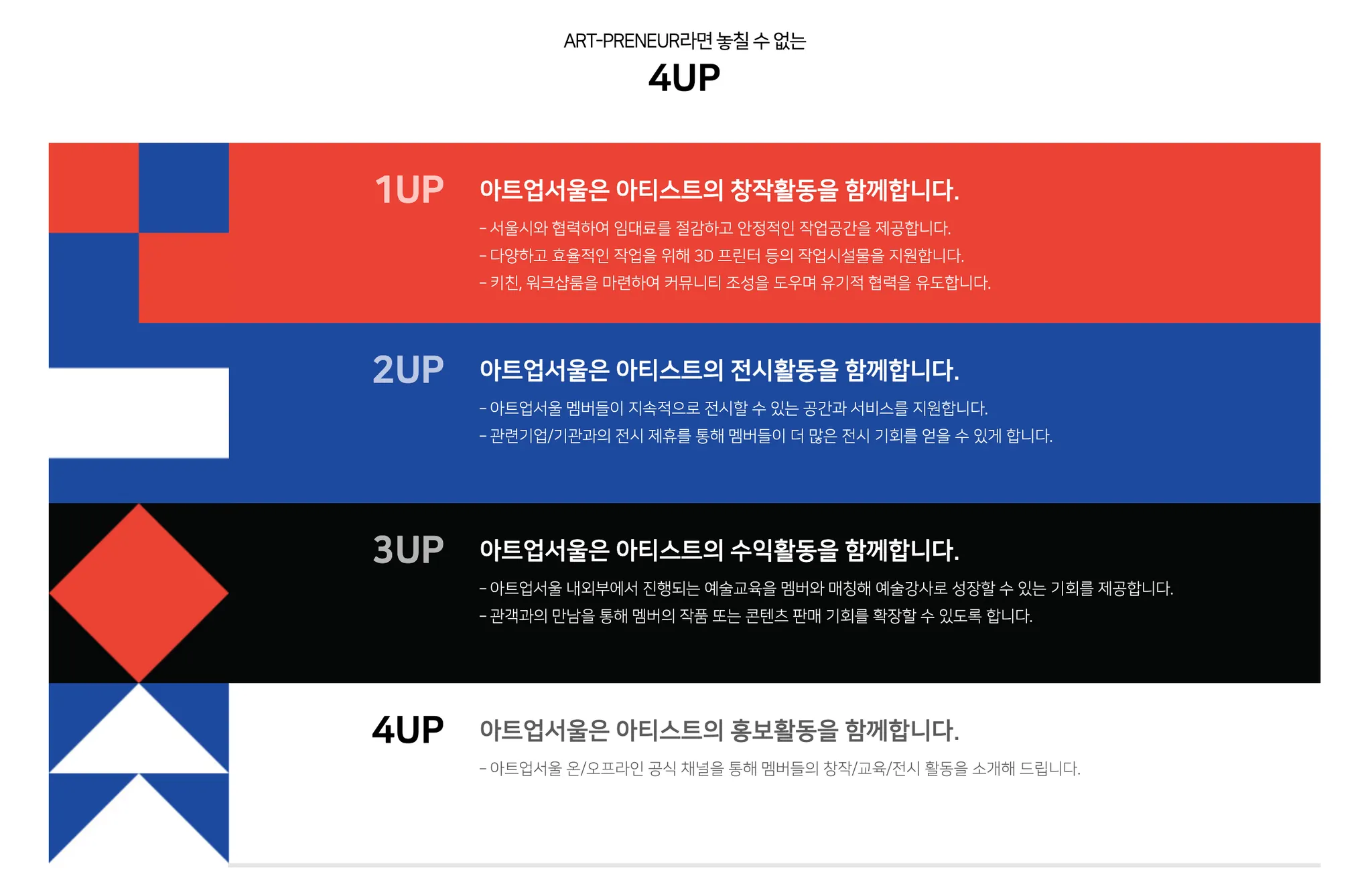 아트업서울은 아티스트들이 ART-PRENEUR가 되어 대중과 다양한 교류의 기회를 만드는 아티스트 코워킹 스튜디오입니다.